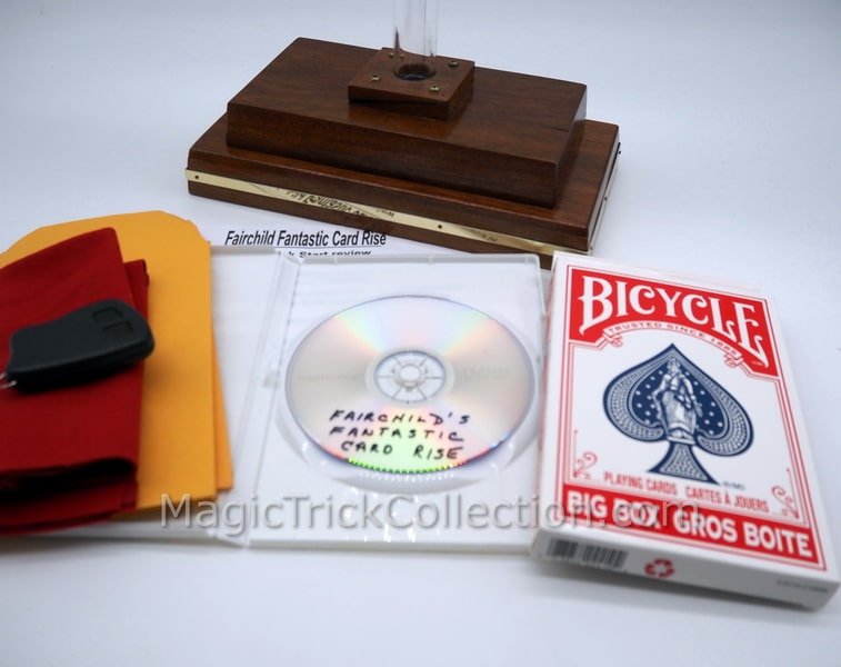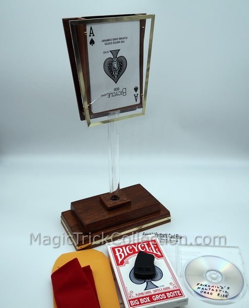 Fairchild’s Magic Fantastic Rising Cards Stage Illusion Rising Cards Magic is an incredibly large 18″ tall card rise. Definitely for the professional magician and someone familiar with handling thread reels.