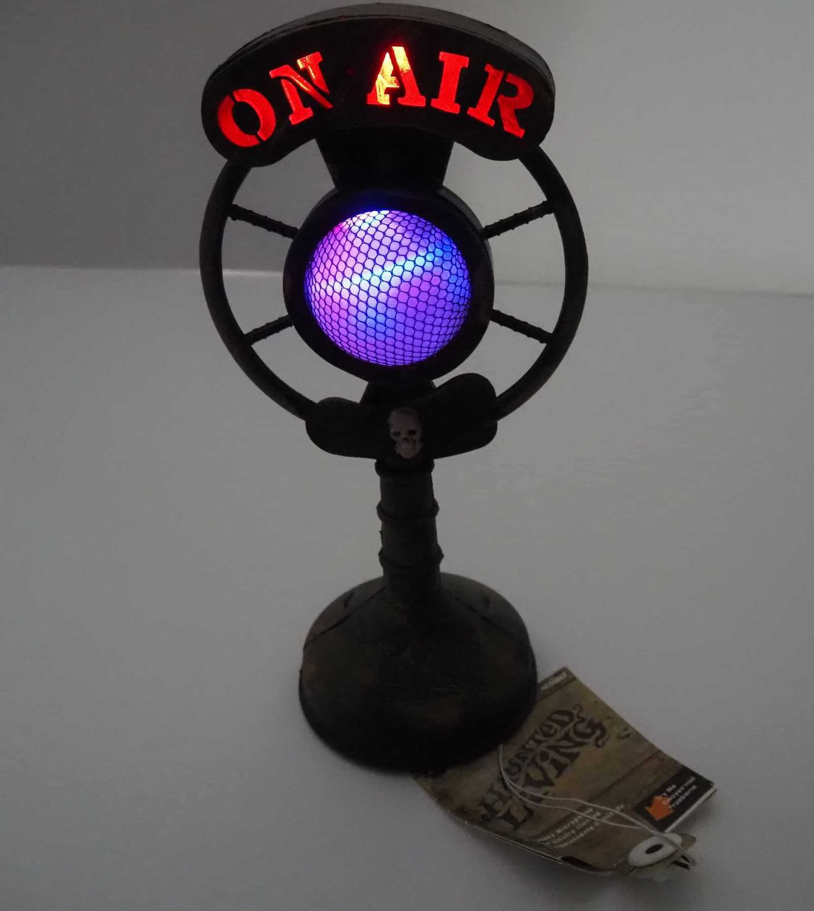 Halloween broadcast microphone that lights up and tell spooky ghost stories. Takes triple AAA batteries, not included. Tested, works as expected, in good condition.