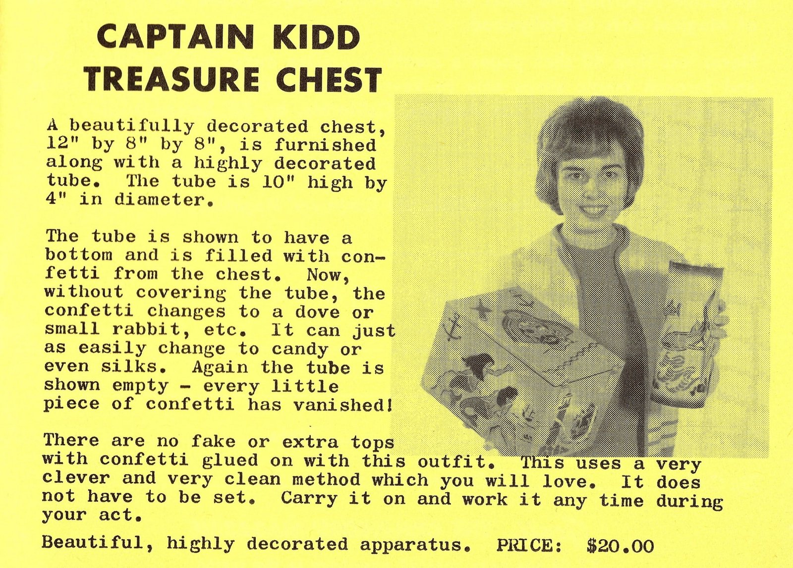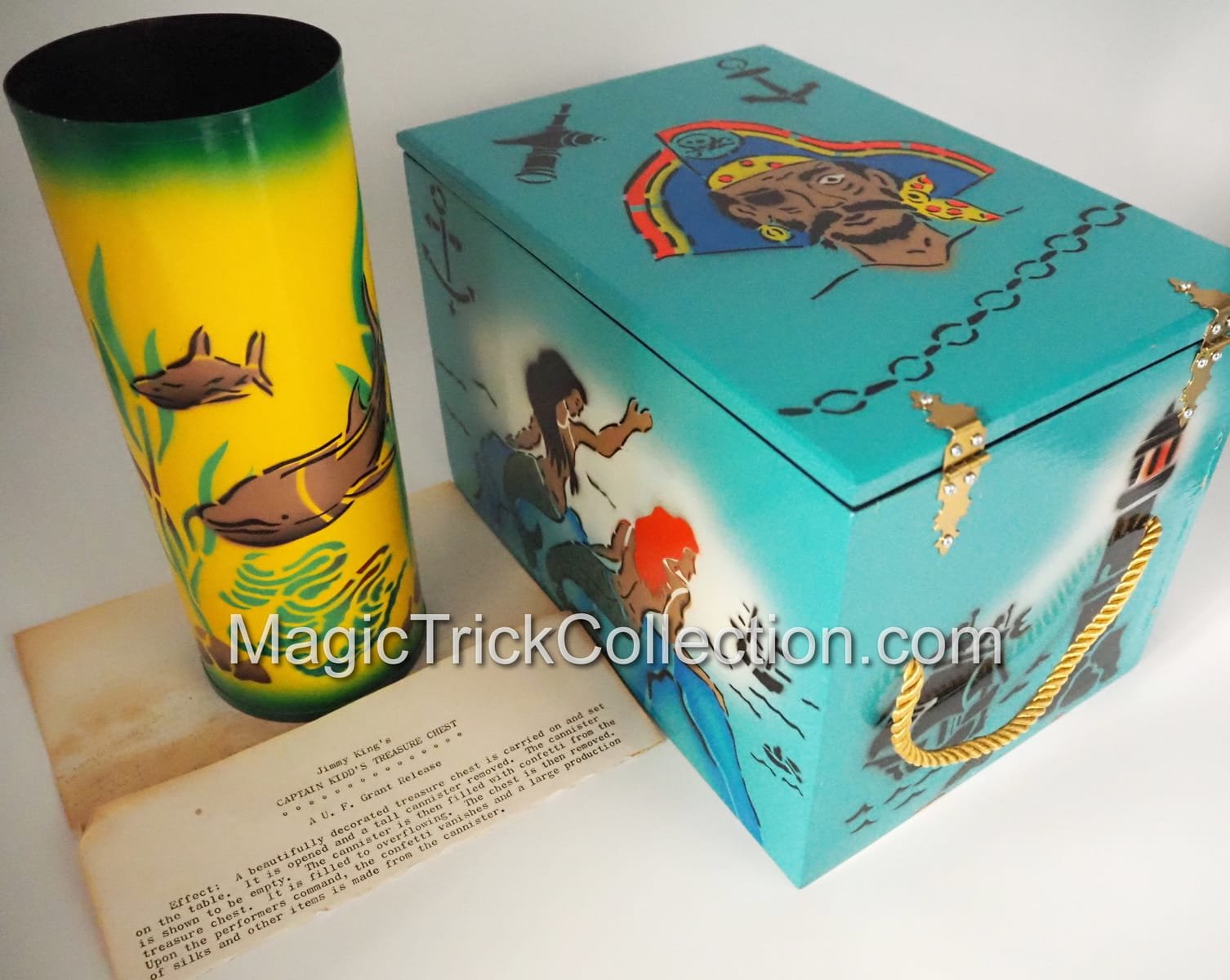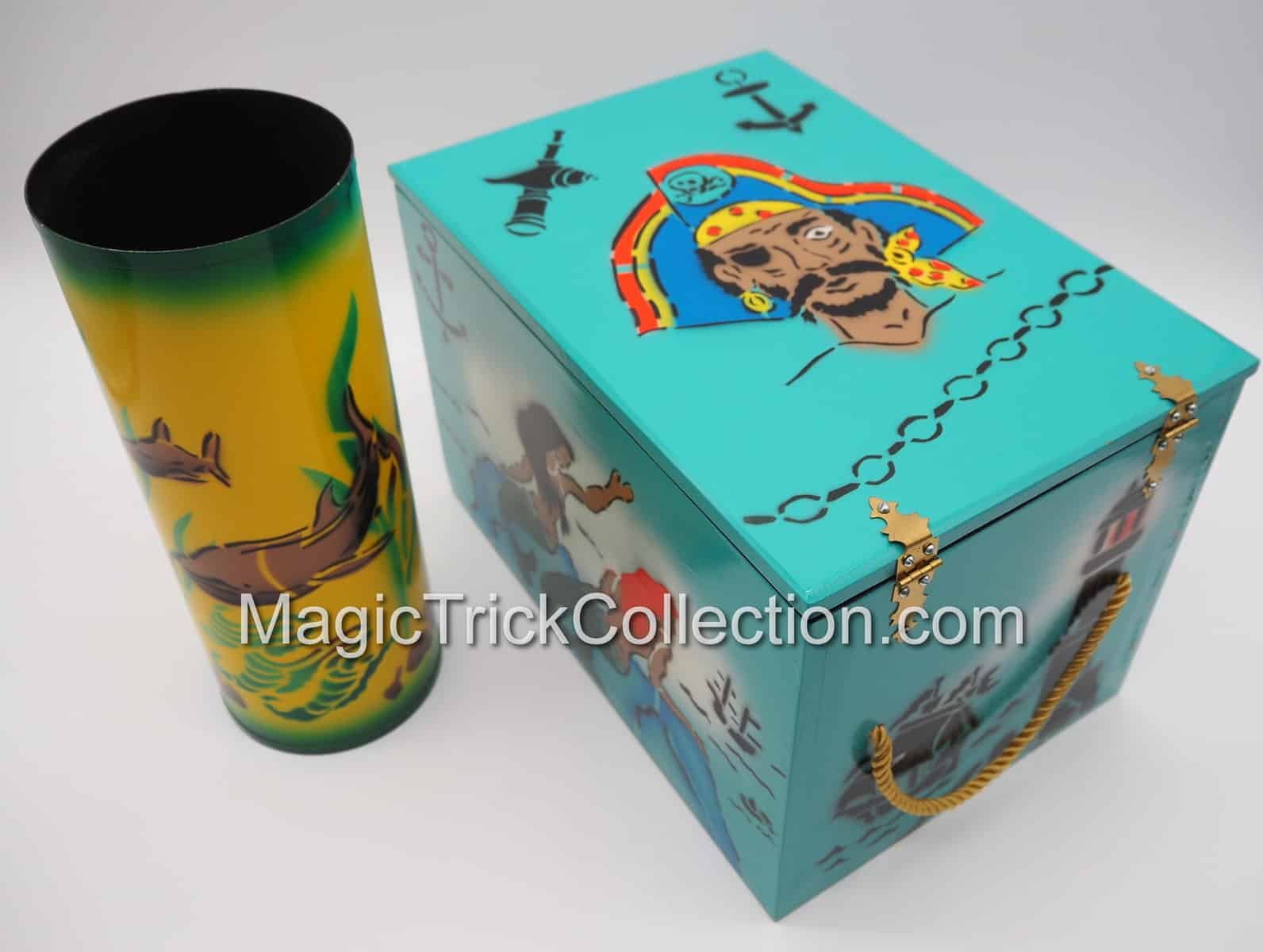 Captain Kidd’s Treasure Chest is a vintage magic trick manufactured by MAK Magic, designed by illusion creator Jimmy King.