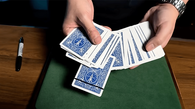 Here’s how it works: A spectator picks a card freely, signs their name on it, and puts it back into a random place in the middle of the deck. The magician draws a black line on the top card; suddenly, the black line moves instantly, jumps to different positions, and then disappears in a flash.
