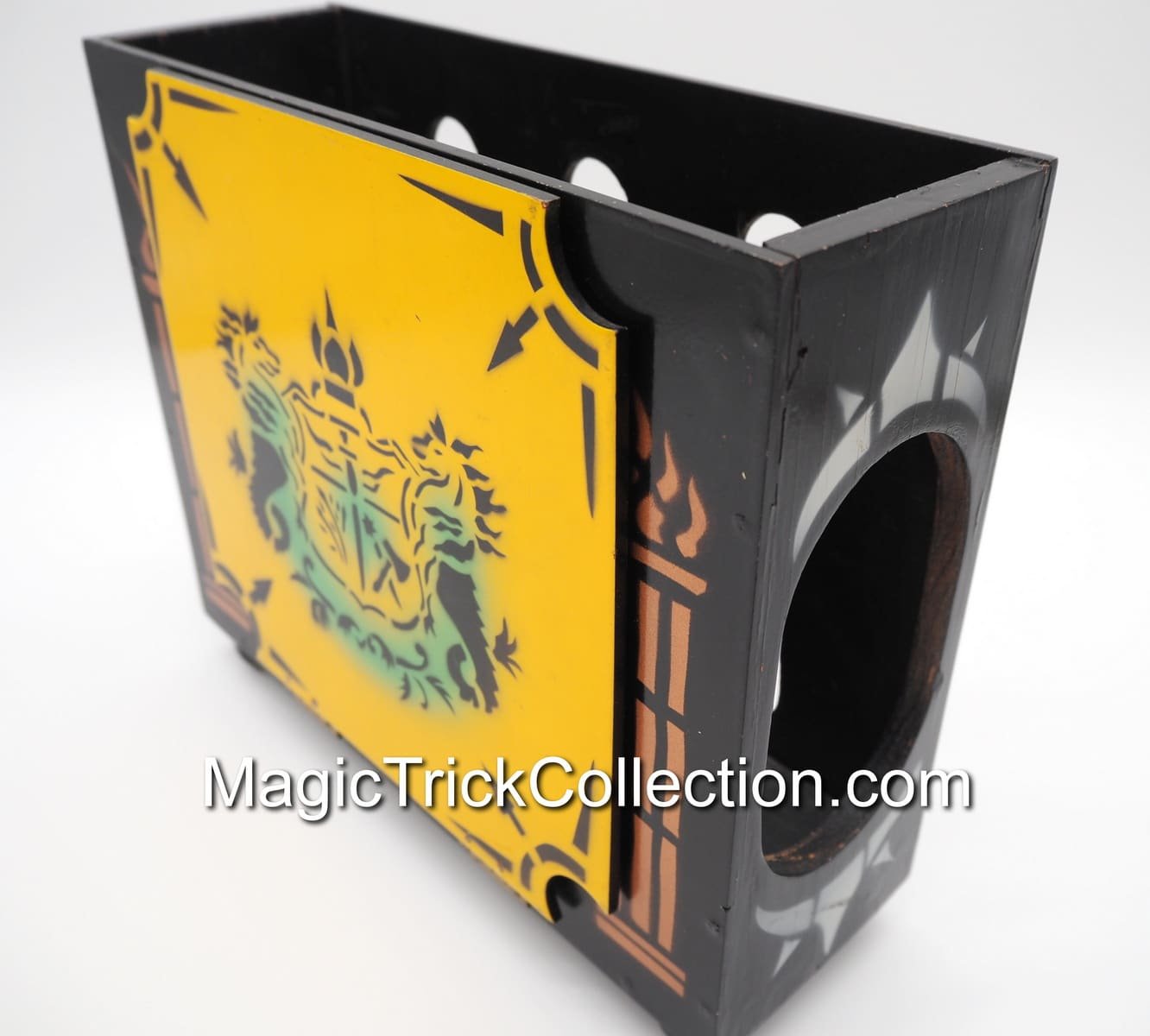 MAK Magic Prisoners Paw is a portable self-contained illusion where the magician’s hand appears to penetrate a brick wall seen from within the box through the several slotted openings.