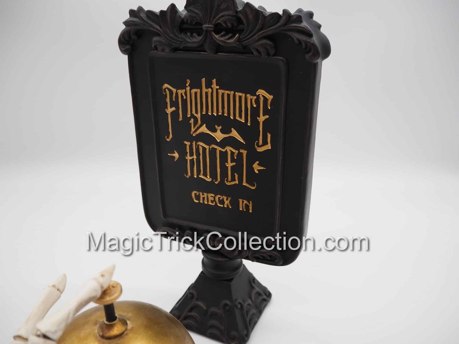 This Animated Halloween service bell prop is motion-activated to press bell. Call bell rings as you’d expect. Vintage hotel sign greets guests or perfect as part of haunted hotel theme!