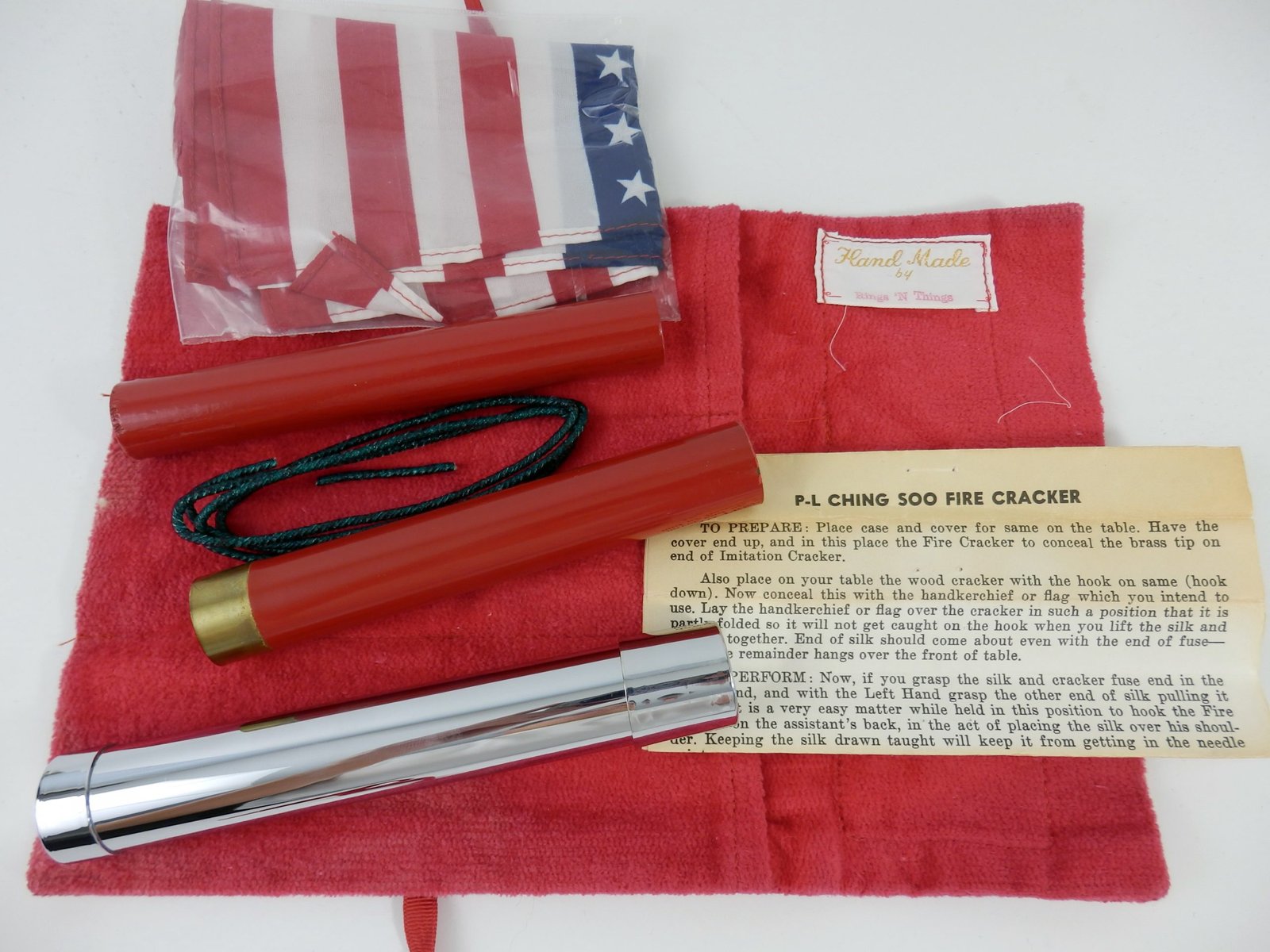 DESCRIPTION: For your consideration is this extremely rare Rings-n-Things manufactured P&L Ching Soo Fire Cracker. A classic American 4th of July themed effect that is definitely a vintage magic trick collectible you’ll want to grab. Manufactured by the original Rings-n-Things this is an awesome prop.