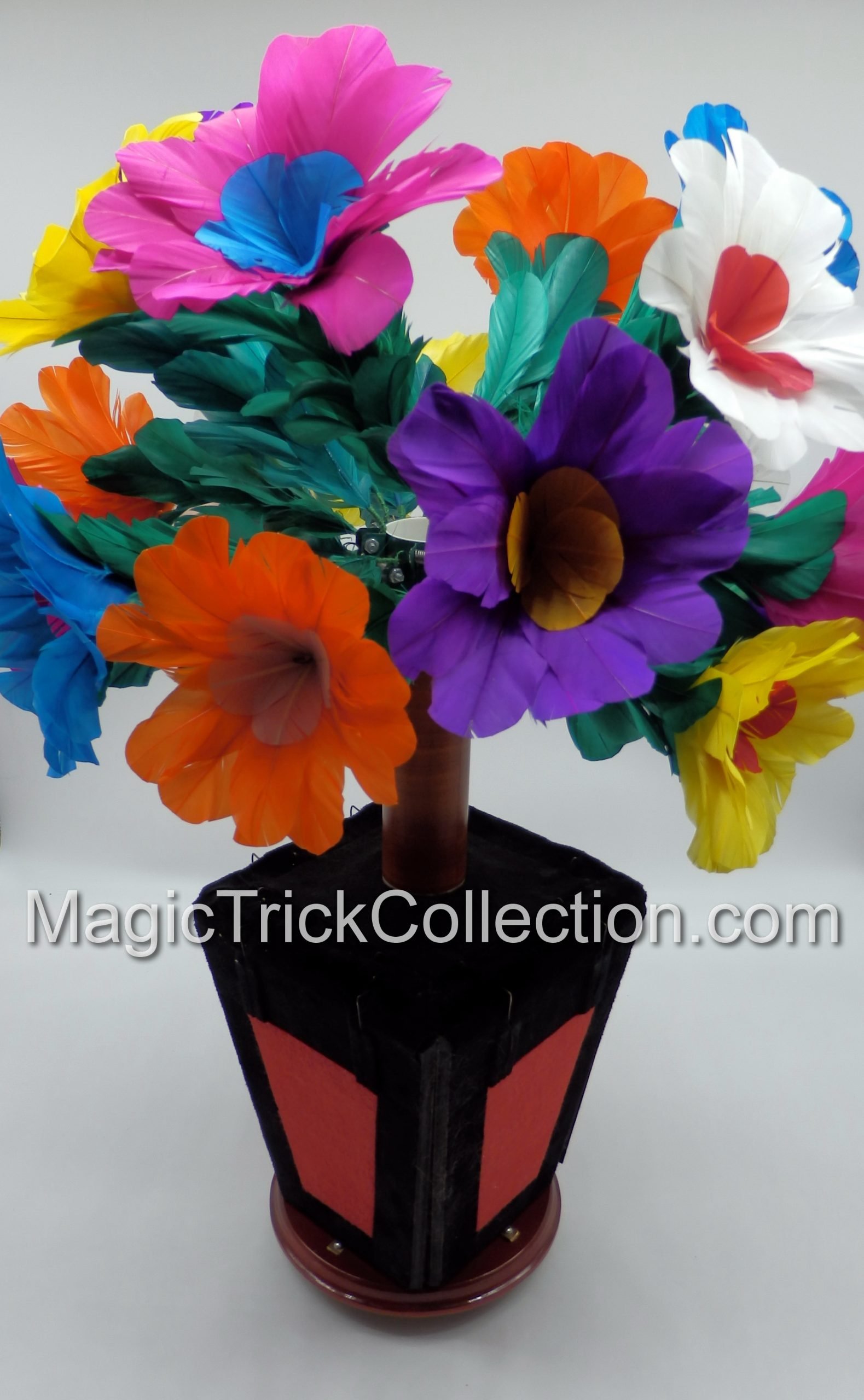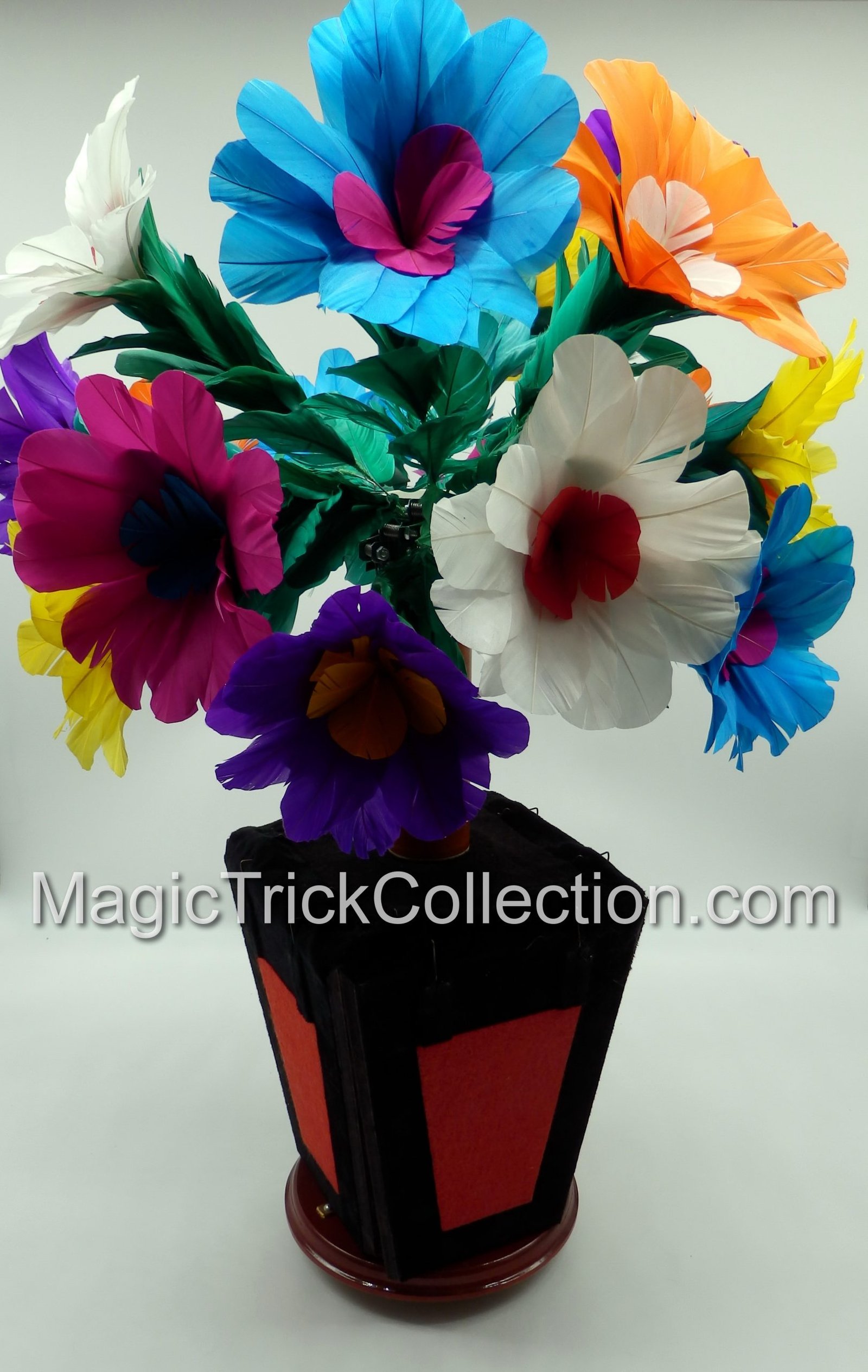 The magician shows an ordinary night lamp to the audience. With a magical and mysterious look at the lamp, he transforms it into a beautiful flower vase having an enormous bouquet of flowers in it!