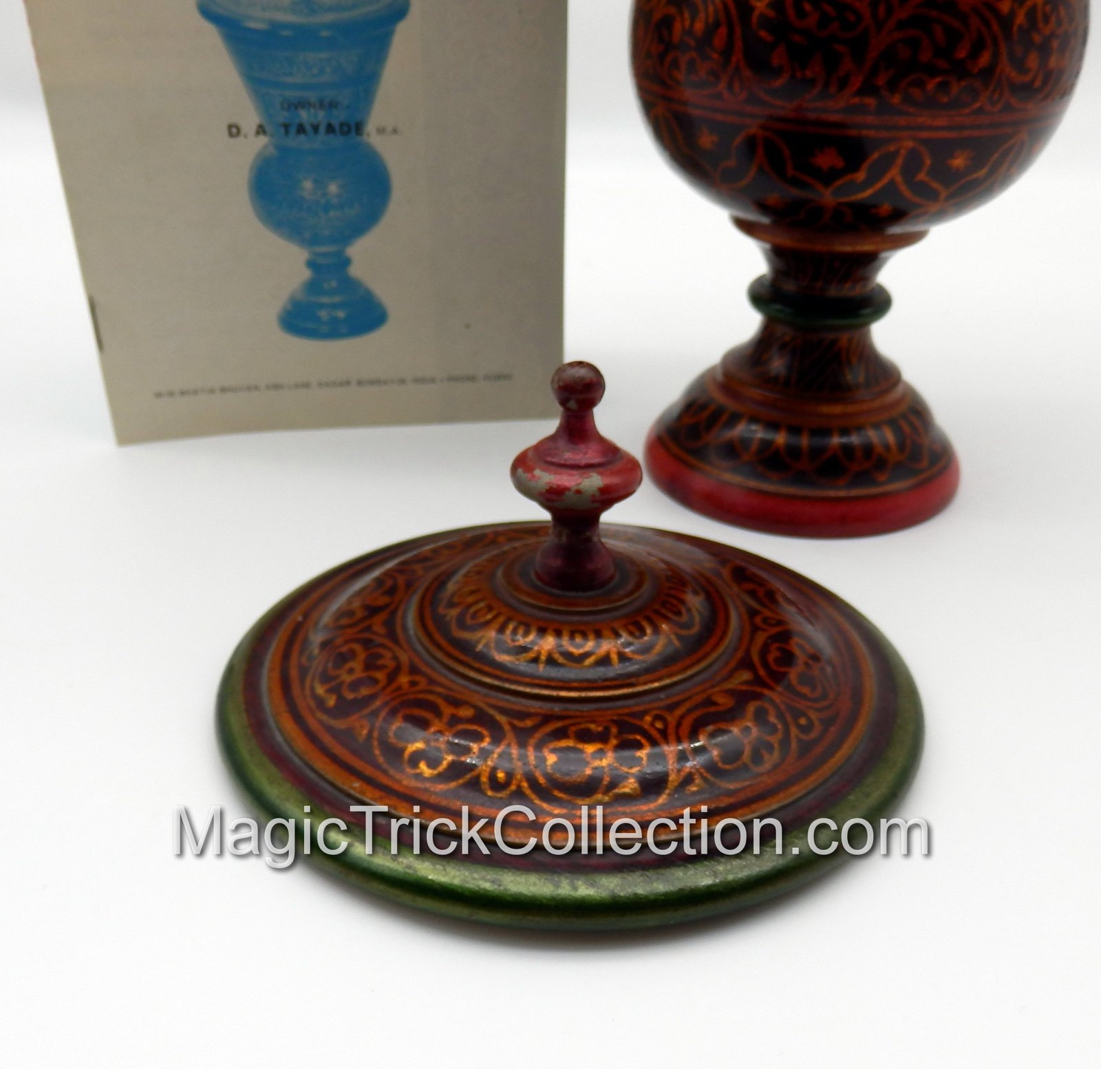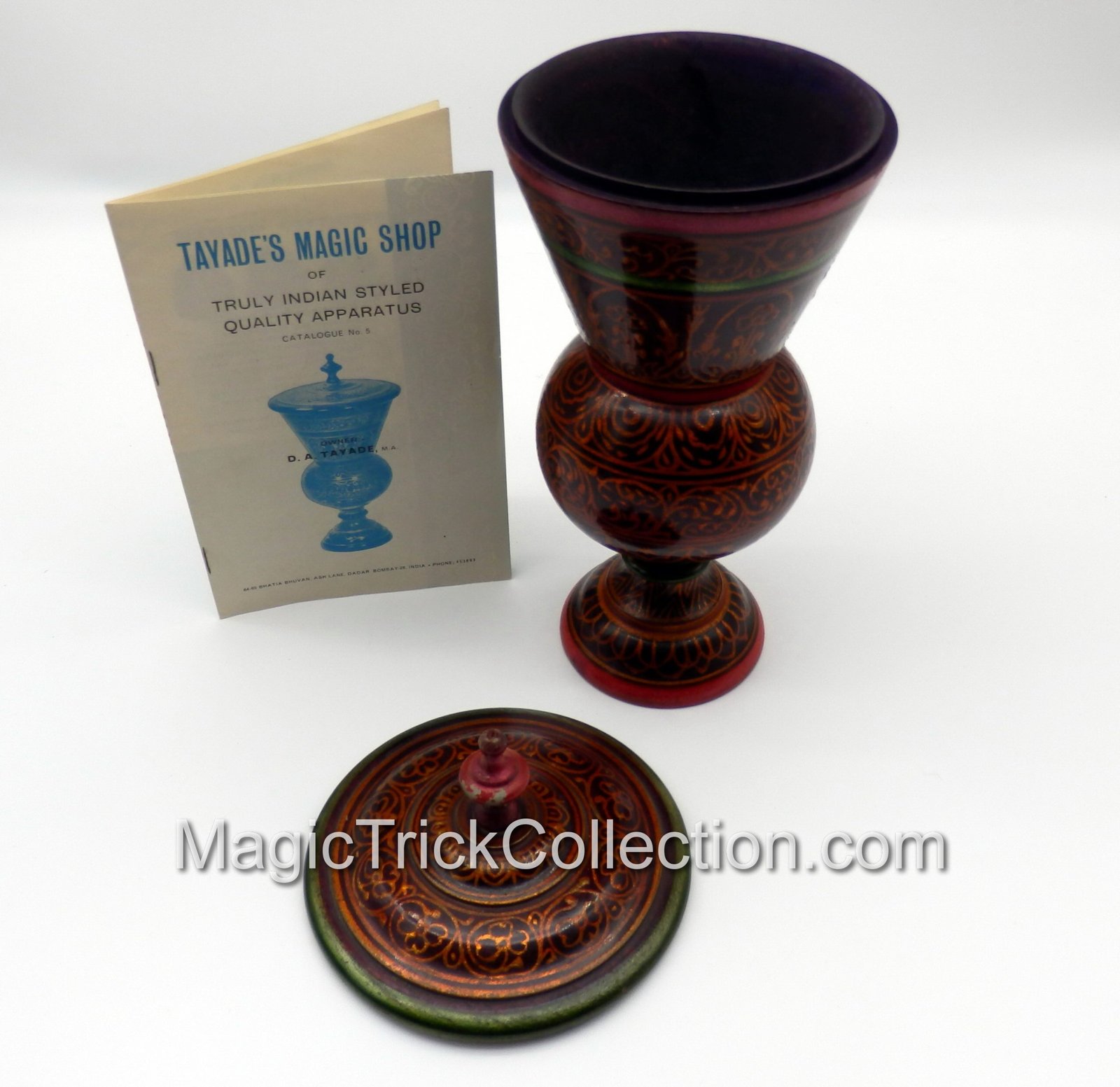Rice is poured into the Vase and the lid is replaced. The performer lifts the lid to reveal a magical transformation in the form of a lemon, orange, baseball or anything else that will fit into the vase. The performer pours out the contents (orange etc.) and shows the rice has completely vanished!