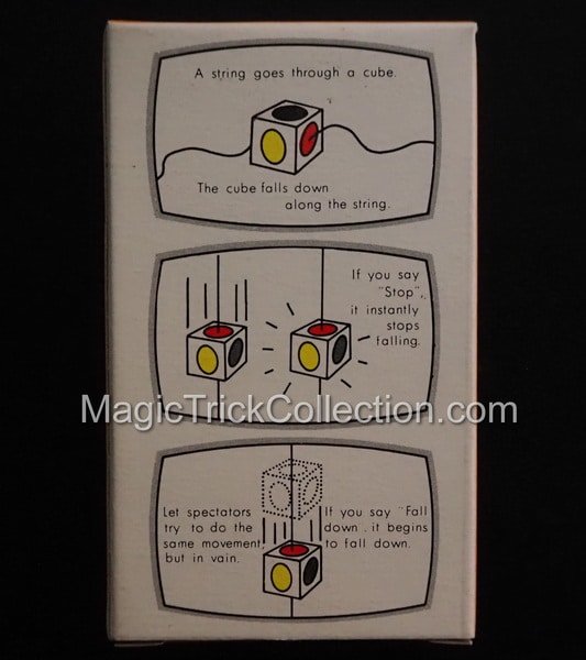 - Effect: A small white cube with colored spots is threaded onto a string. When held vertically, the cube falls freely, but it instantly stops mid-air at the magician’s command. Spectators are typically unable to replicate the effect.