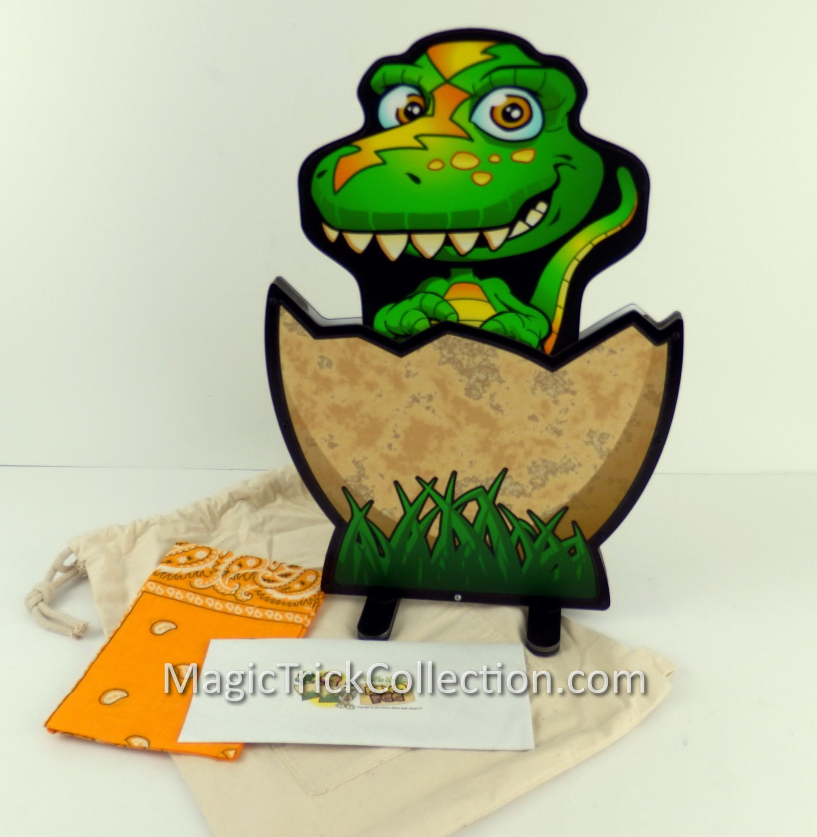 The magician takes his audience back in time, 65 million years ago to the Cretaceous Period to solve a scientific mystery. Using the help of the audience the Great Fossilini tries to determine whether dinosaurs were more like Lizards, as their name suggests, or more like birds. The magician explains how the dinosaur in the egg will magically change from lizard to bird, that is, if dinosaurs were more like birds. The magician continues to change the dinosaur back and forth, proving dinosaurs were like lizard AND birds. The audience discovers his method of magic and develops doubt that the Great Fossilini has the magic skills he boasts of. The magician is shocked at the accusation and explains how important it is to ALWAYS believe in magic, because if you don’t, the dinosaurs will disappear and we will be left with only fossils. The magician then amazes the audience with an unexpected boney surprise.