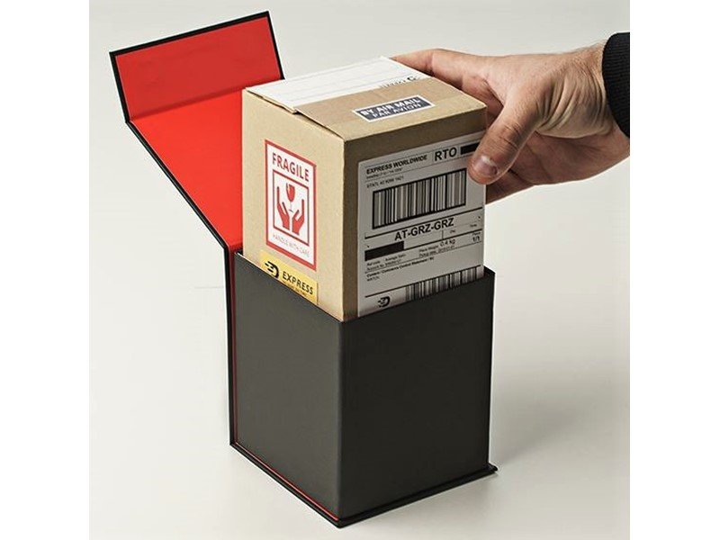 A beautifully packaged box is placed on a table before the performance begins. The magician then borrows any small object from the audience, has it signed then makes it vanish!