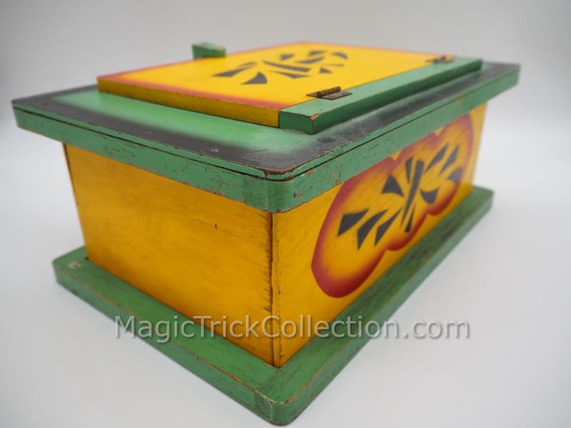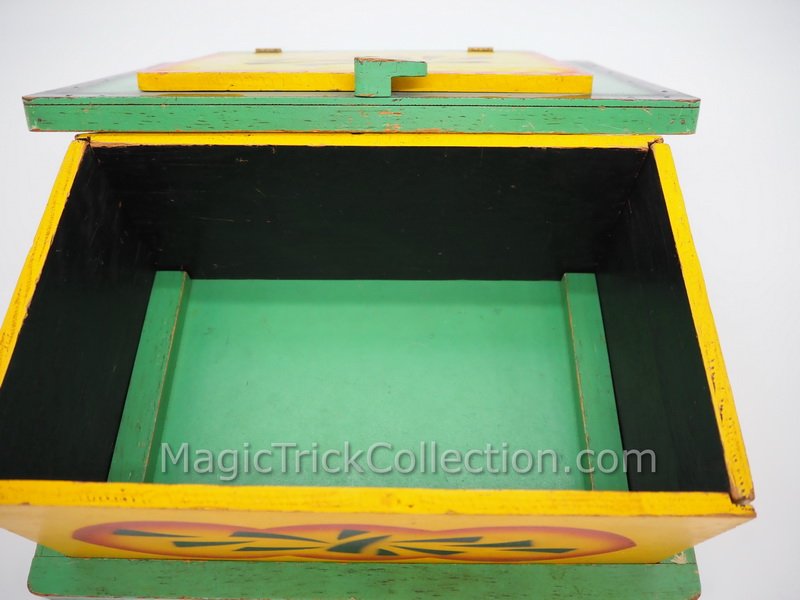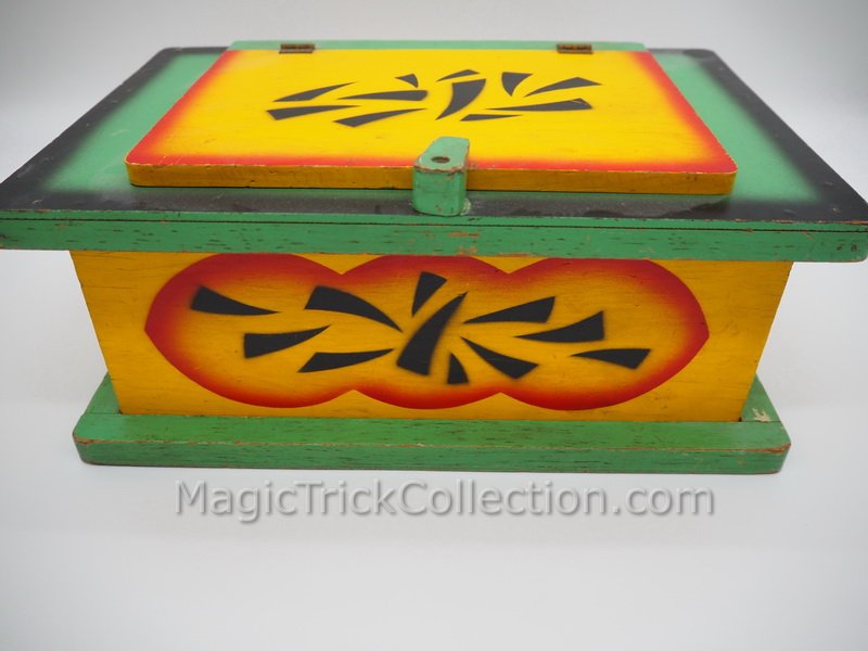 • Effect: The magician places one or two live doves into a decorated box. The box is then completely dismantled, piece by piece, and the individual pieces shown to the audience, demonstrating that the birds have disappeared without a trace. The base on which the box rests can often also be taken apart or folded flat.