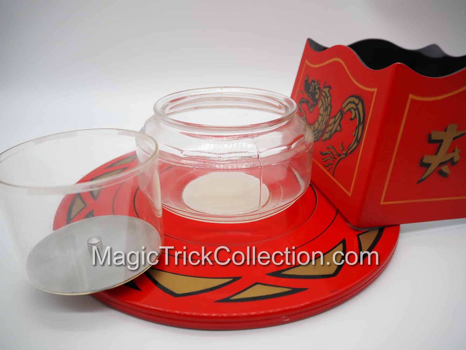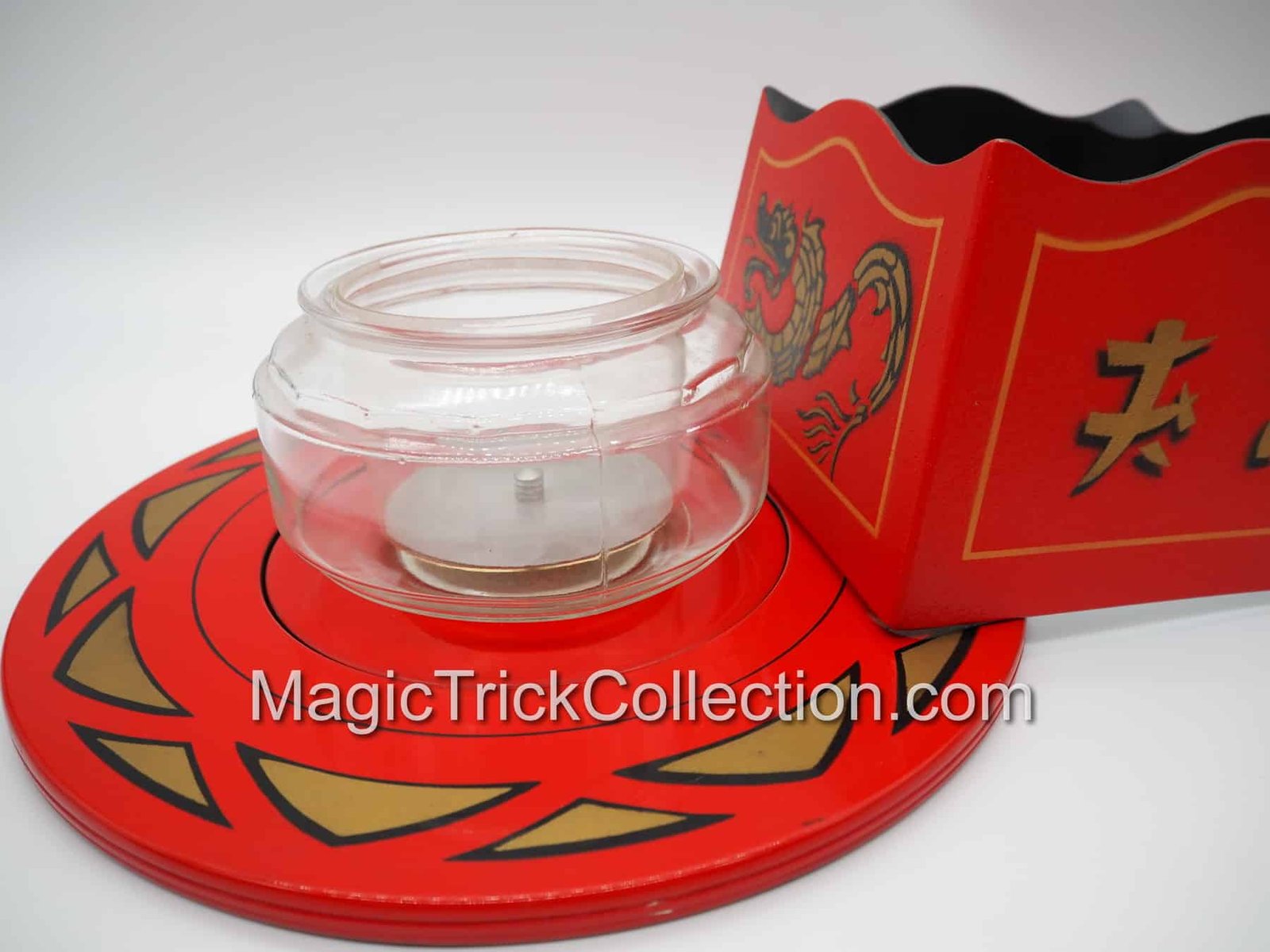 Westgate Bowl Production Illusion, Rare & Vintage Magic Trick Collectible. The “Westgate Bowl Production” is a classic stage magic illusion where a magician produces a large bowl of water and live goldfish from a seemingly empty, folded-up tube and cloth-covered tray.