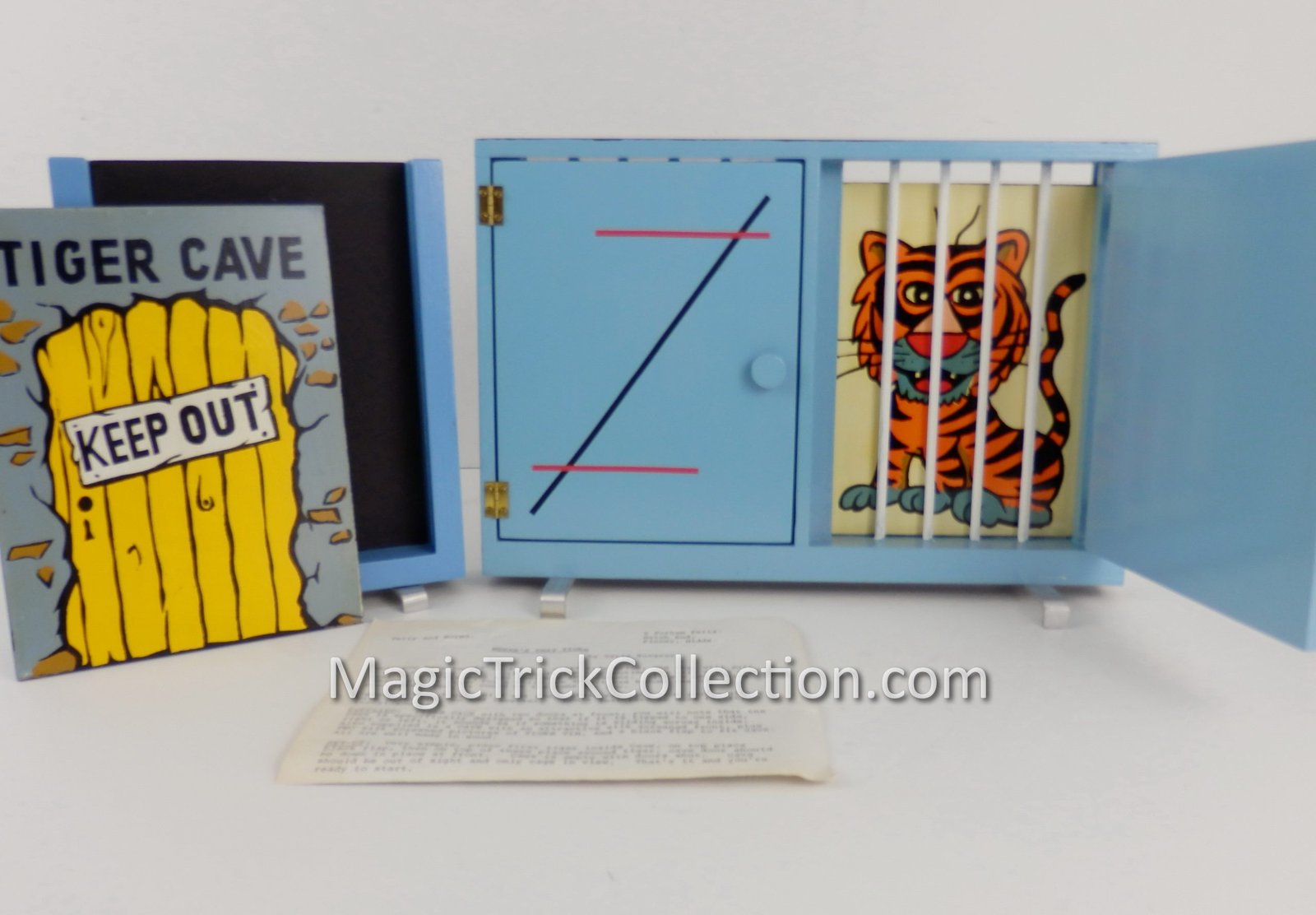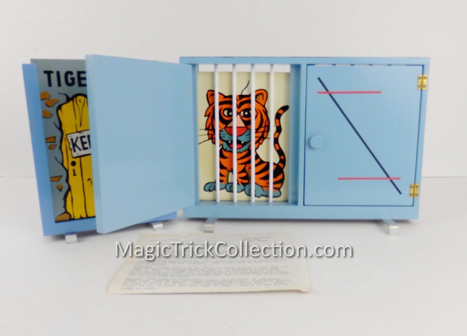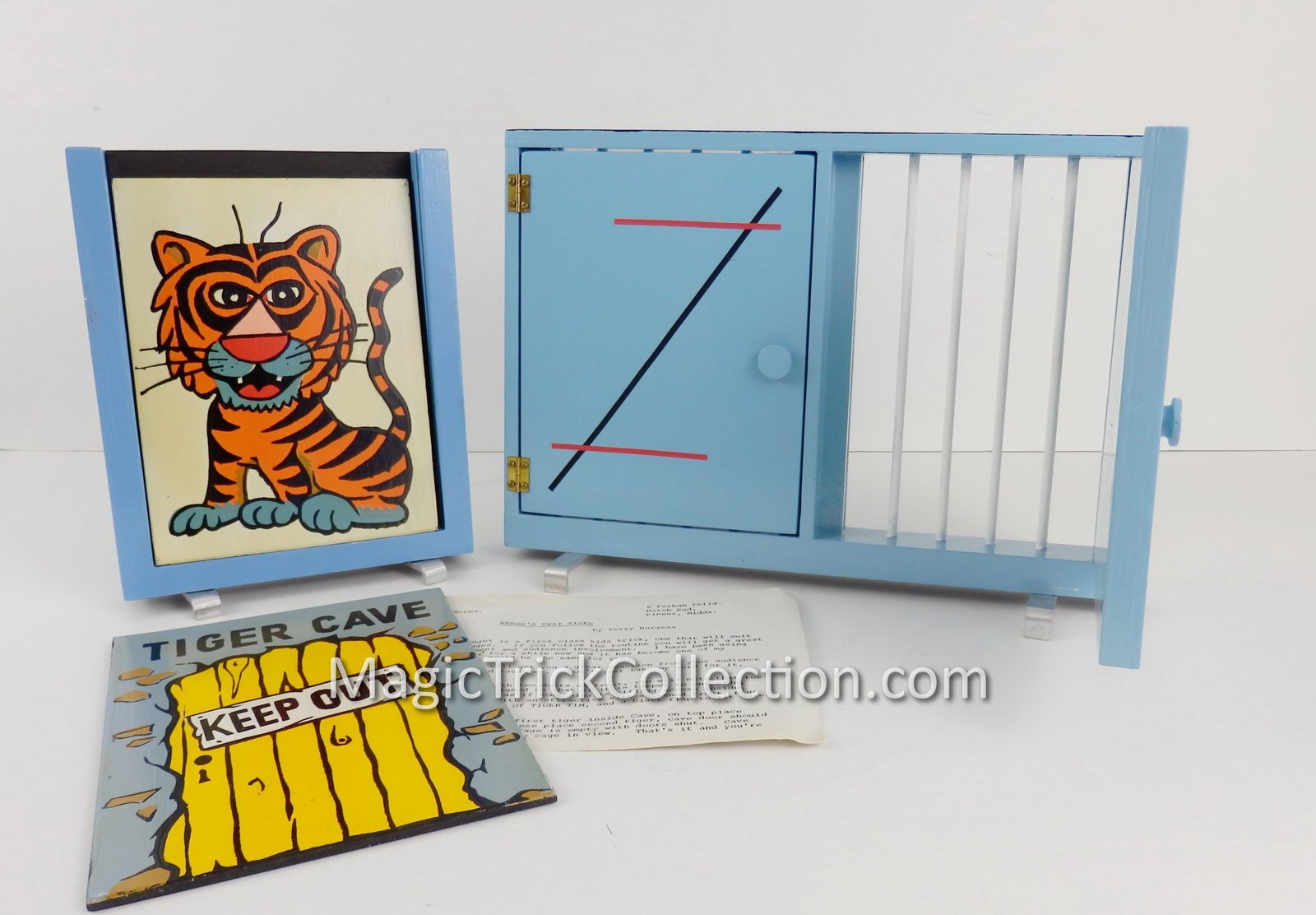 DESCRIPTION: For your consideration is Where’s That Tiger , an awesome children’s effect that combines some of the aspects of the sucker die box and run rabbit run into an incredible routine. The magician introduces Tim the Tiger and his cave from where he seems to disappear from and re-appear in his cage, finally disappearing from his cage. Through a lot of back and forth with your audience this routine plays out with comedy and clever chasing of where Tim the tiger is.